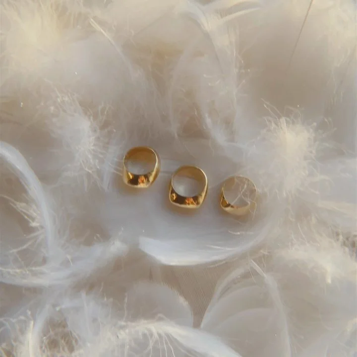 Like a soft place to fall as you drift into dreamland. The ring that started it all, handcrafted in 14k recycled gold and available in three sizes, Plush, Standard, and Petite. Wear them solo or stack your favorites.